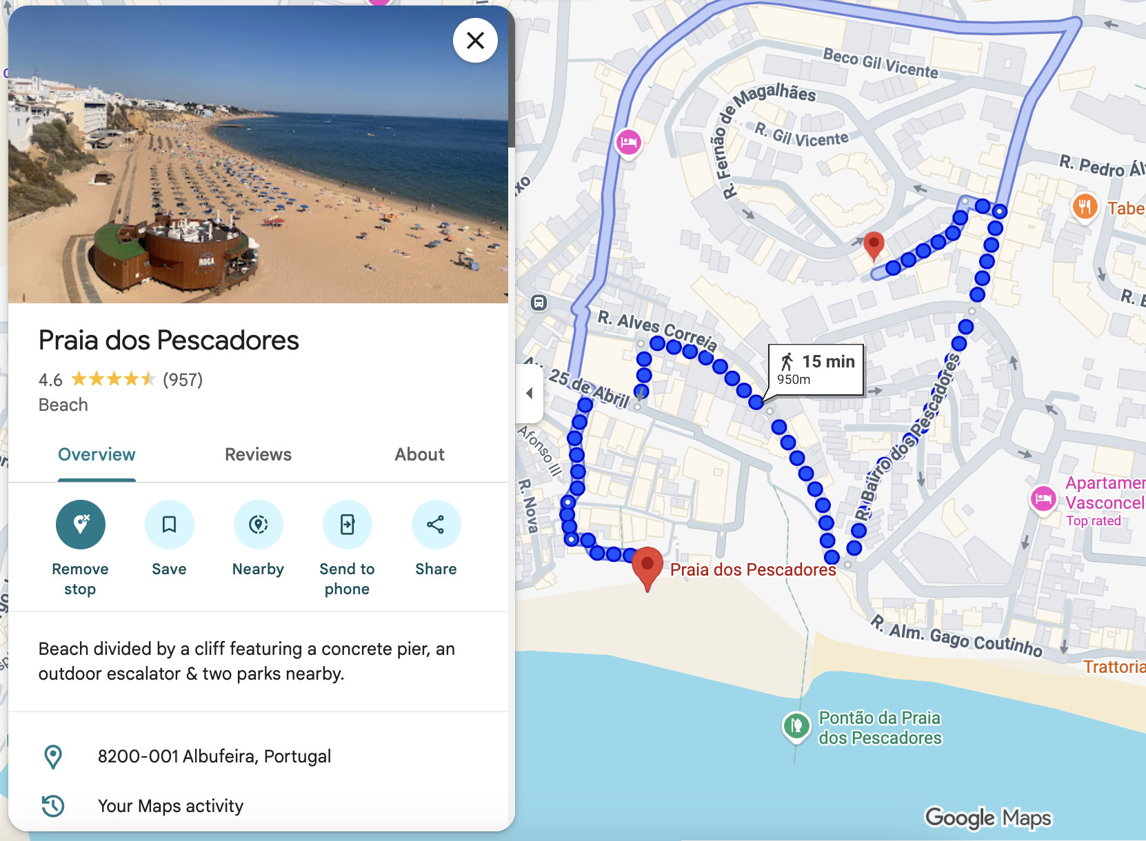 El piso está a 6 minutos en coche de la Praia dos Alemães, a 7 minutos de Leixão dos Alhos y a 7 minutos de la Praia da Oura.