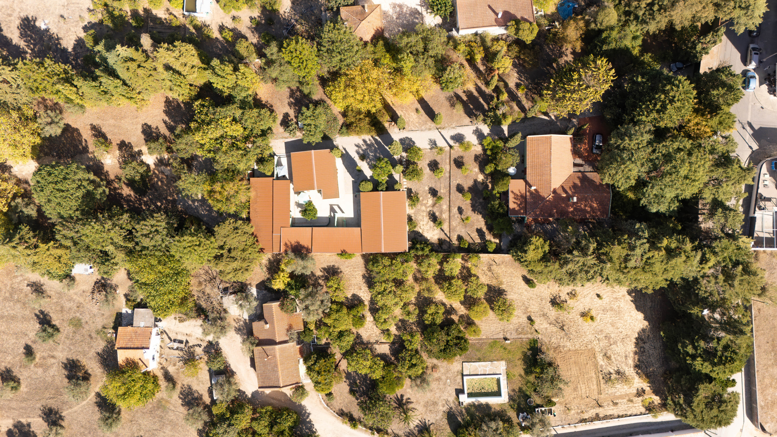 Le aree esterne e la vasca rimangono condivise con la casa degli ospiti vicina, garantendo sicurezza e coesistenza armoniosa.