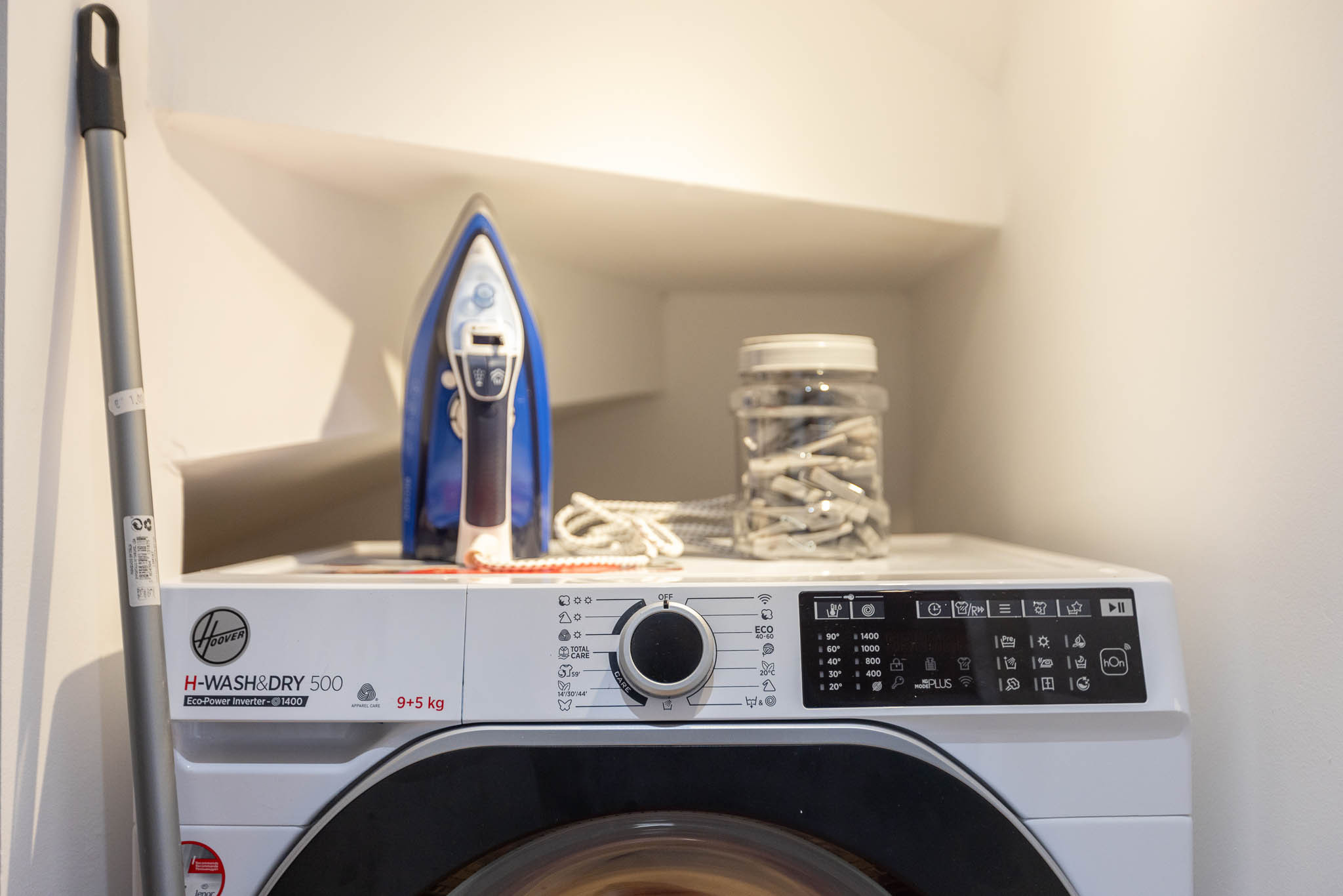 Frigorífico, Máquina de lavar louça, Congelador, Louça, Máquina de café, Microondas, Torradeira, Máquina de lavar roupa, Ferro de engomar, e Secador de cabelo.